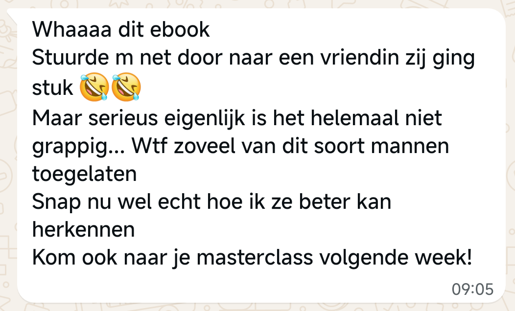 In deze manual vind je de 11 meest seksueel onveilige mannen. Ik leer je hoe je ze herkent en hoe je ze nooit meer 1 centimeter toelaat.